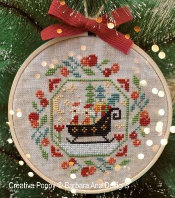 A companion to Holy night, also by Barbara Ana, the full design is just under 4 x 4 inch (10 x 10 cm) when stitched and is circular. It will fit in a hoop or a card with a round aperture.